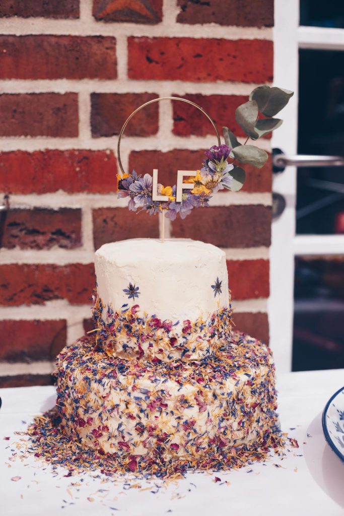 I have often given away a wedding cake on request and it is a nice option if you like to bake. You don’t even have to be a motif cake professional. Here are a few examples: Wedding cake with blossoms, winter wedding cake with cinnamon stars.