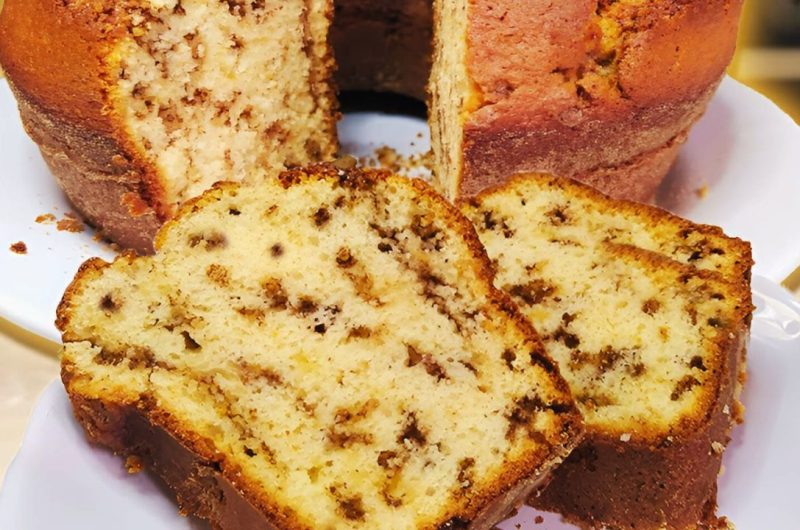 - Remove the cake from the oven and let it cool in the pan for a few minutes.