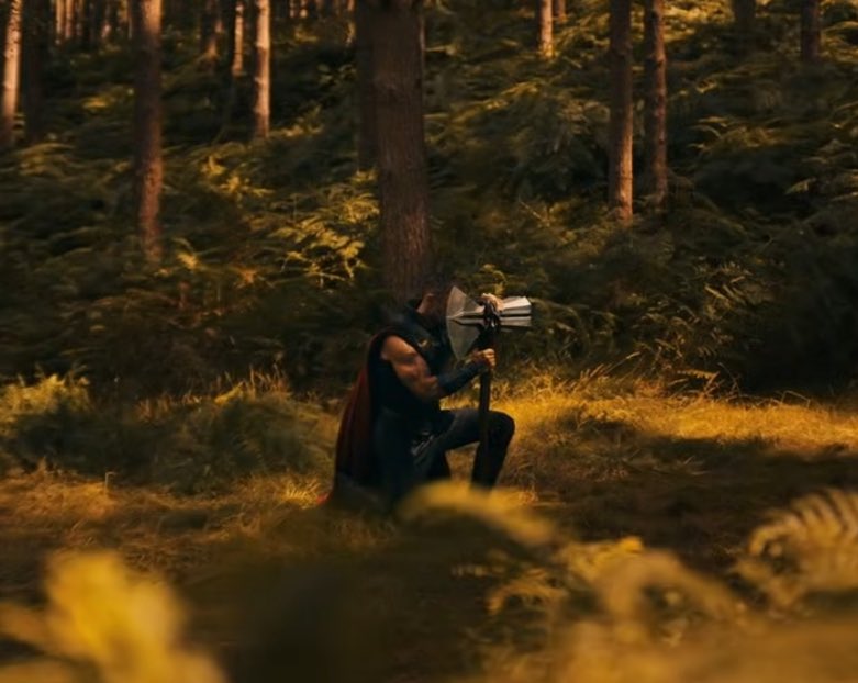 The God of Thunder is seen kneeling in a forest, praying to his late father, the Norse god Odin: “Lend me the strength of the Allfathers, so that I may fight once more. Defeat one more enemy. And return home to her.” Thor pleads for a safe return to see his daughter, Love, played in the film by India, the real-life daughter of Hemsworth and his wife, actress Elsa Pataky. Love first appeared in Thor: Love and Thunder (2022), also being played by the actors' daughter.