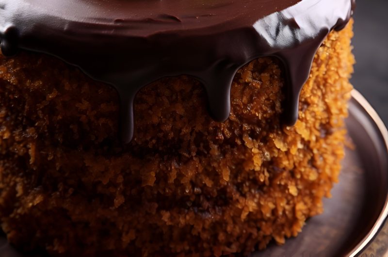 • Let the chocolate frosting harden before cutting and serving the cake.