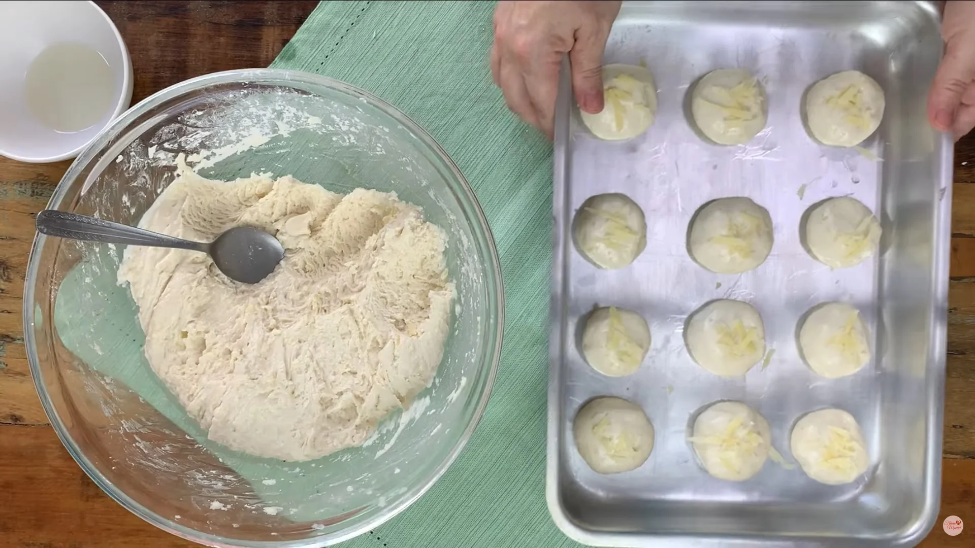 Remove from the oven and wait to cool down. - Remove the cheese breads from the pan using a spatula or knife if necessary and they are ready to serve and eat.