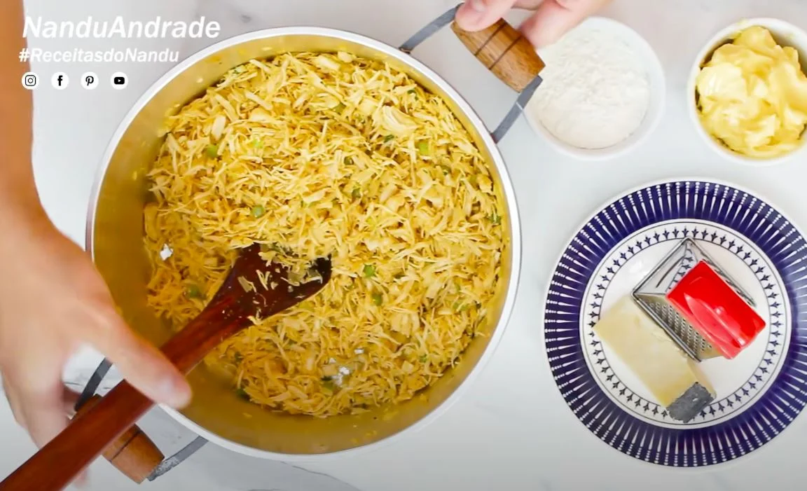 - Add cooked and shredded chicken breast (1kg);