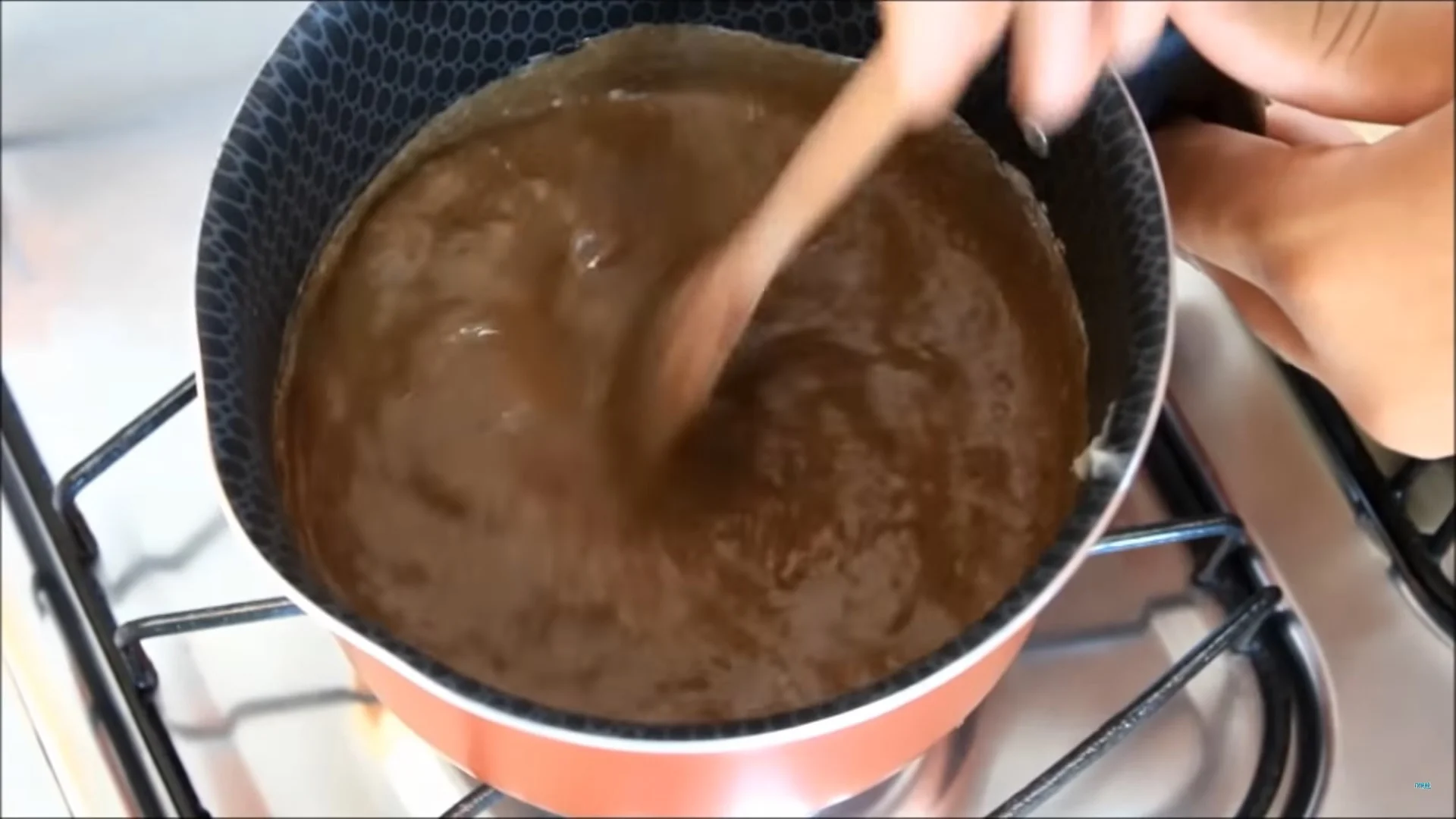 Take to medium fire to low and mix without stopping until you form a liquid and uniform syrup.