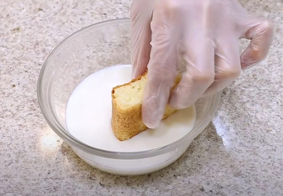 - Dip the pieces of cake in the syrup;