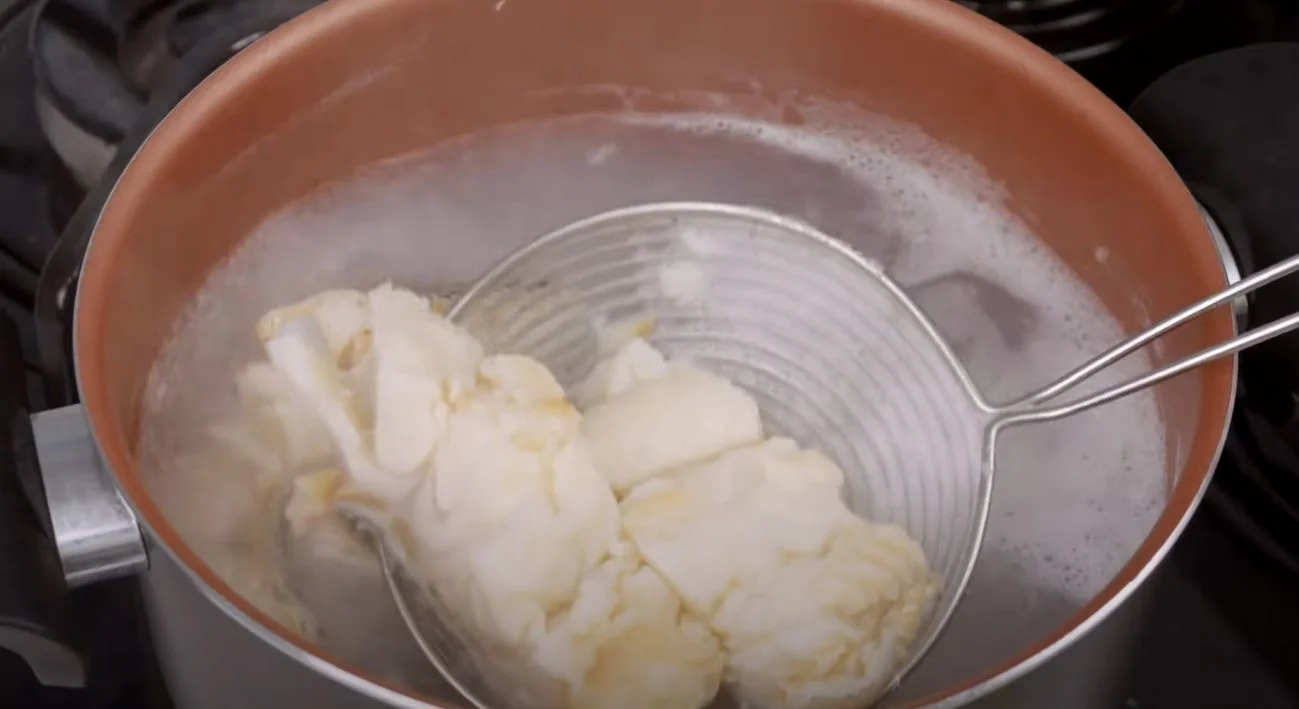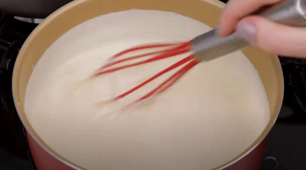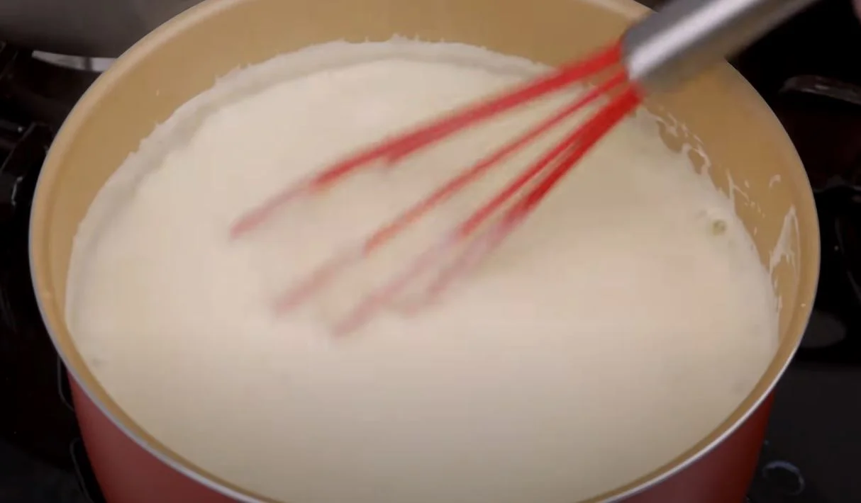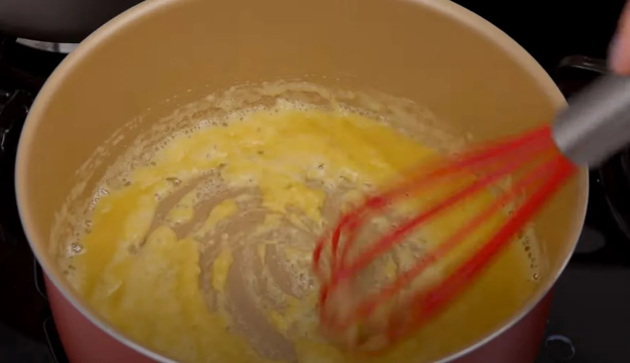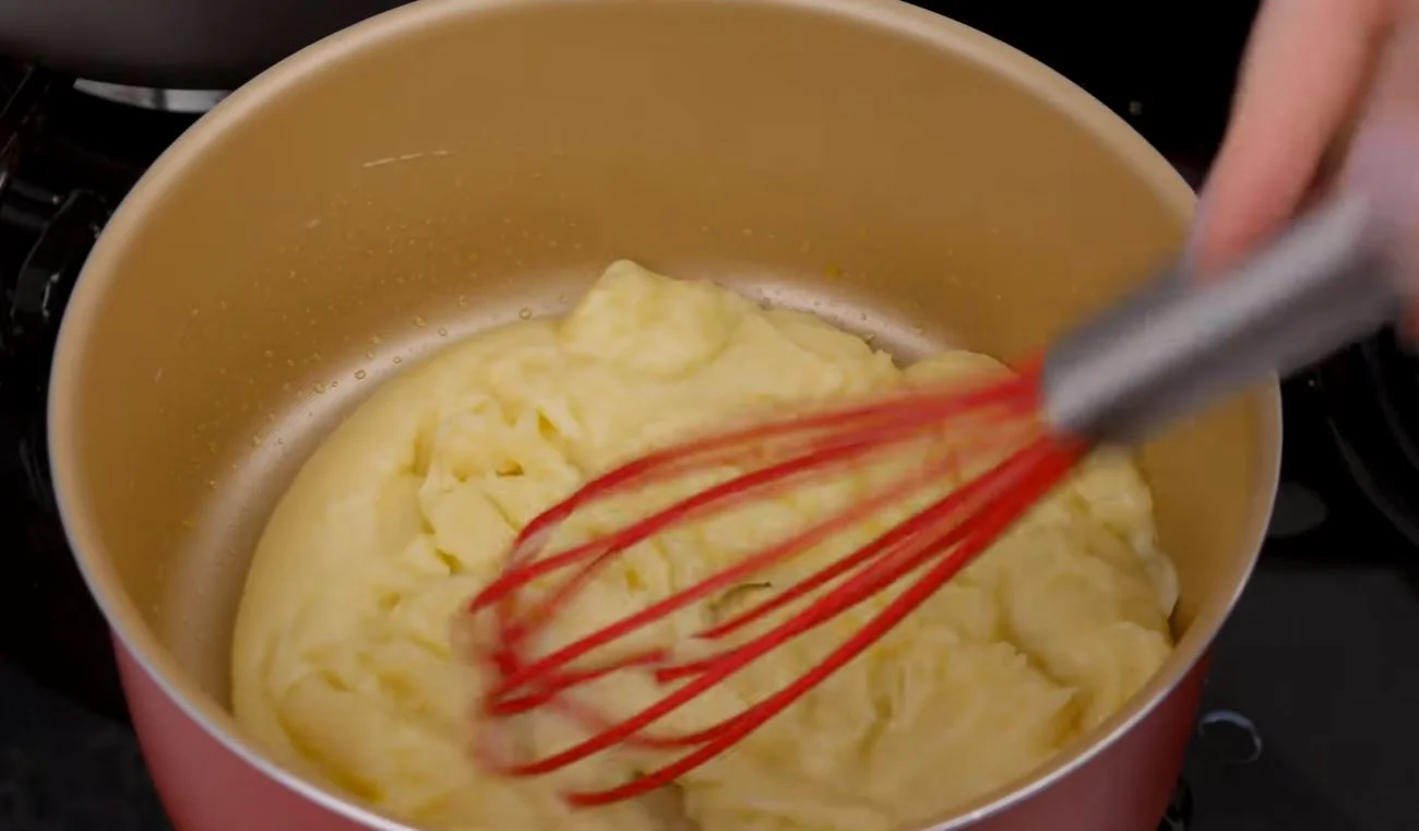 - Add the cod cooking water little by little (use half a ladle at a time, a total of 2 ladles) always mixing;