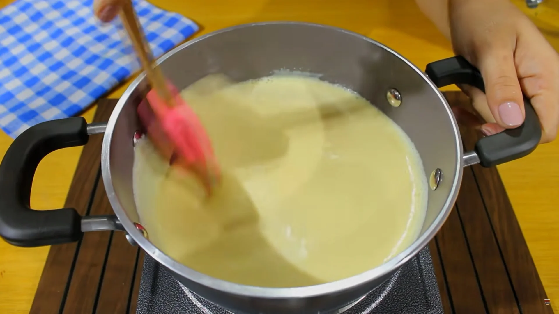 - Cook the mixture over high heat and stir constantly for a few minutes, until it is very creamy and consistent.