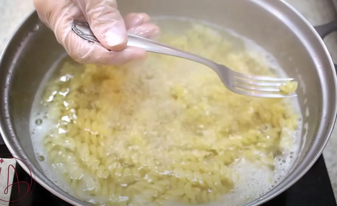 • Add 250 grams of screw noodles or other pasta of your choice;