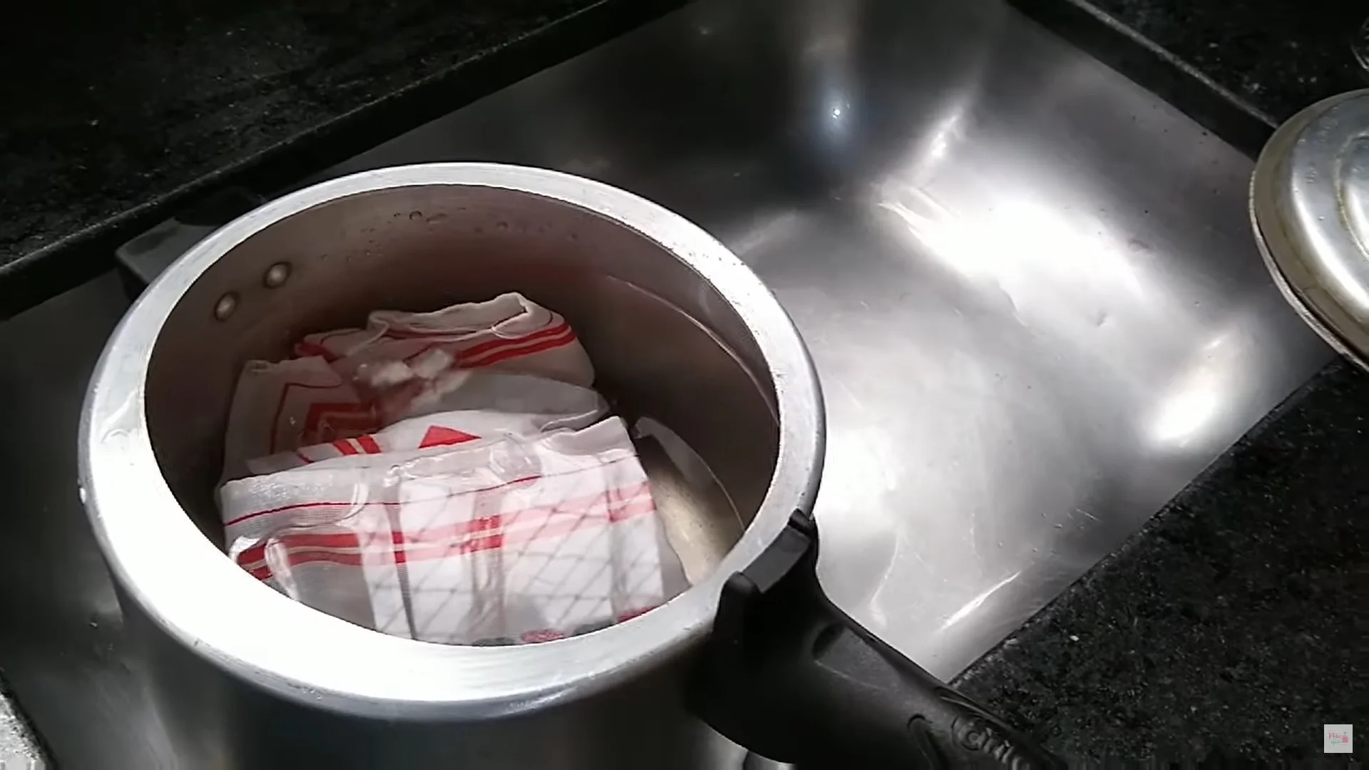 Place the jar inside a pressure cooker and fill it with enough water to cover it.