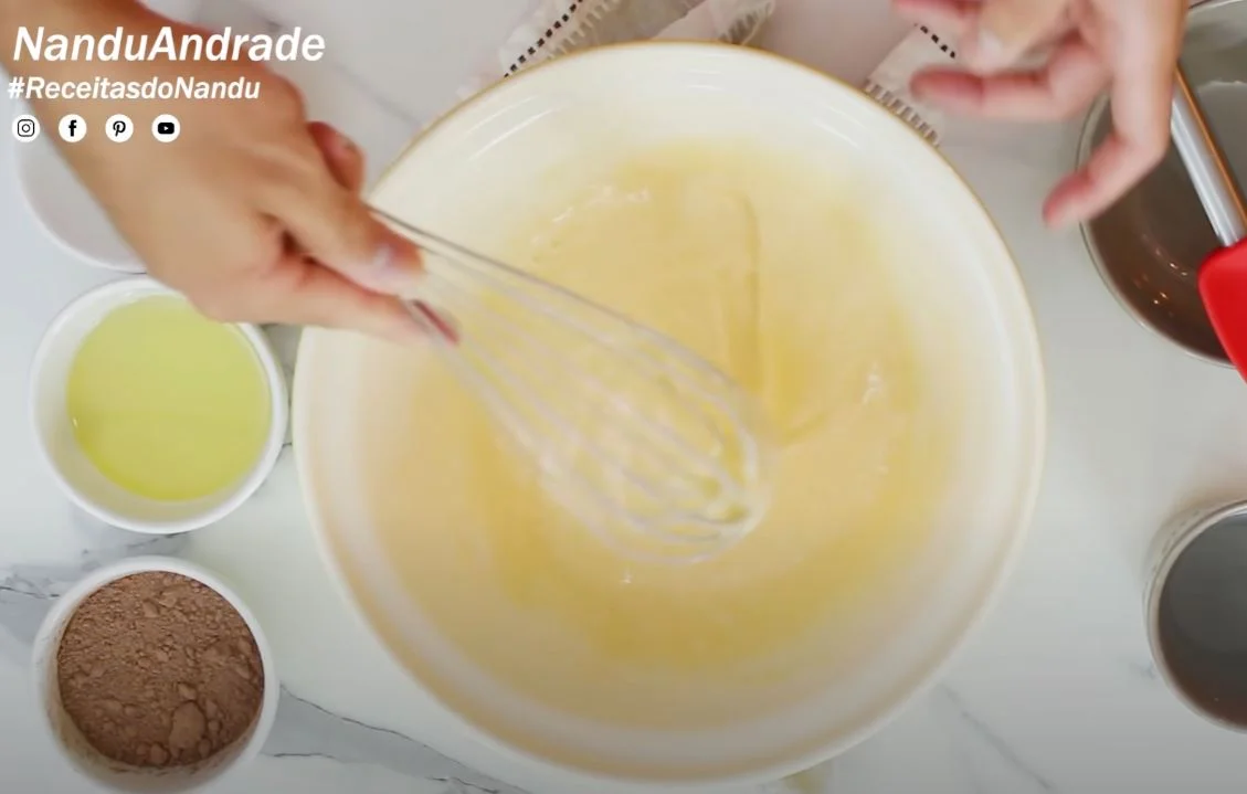 - Add ½ cup of oil (120ml) while mixing;