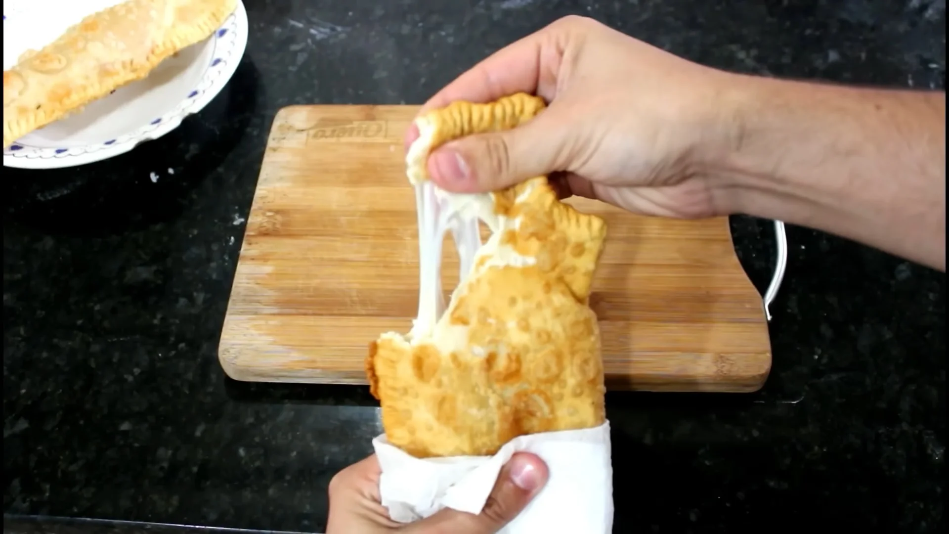 Then lightly press the edges of the pastry with a fork. - Preheat a frying pan with oil over high heat and place the pastel when the oil is hot.