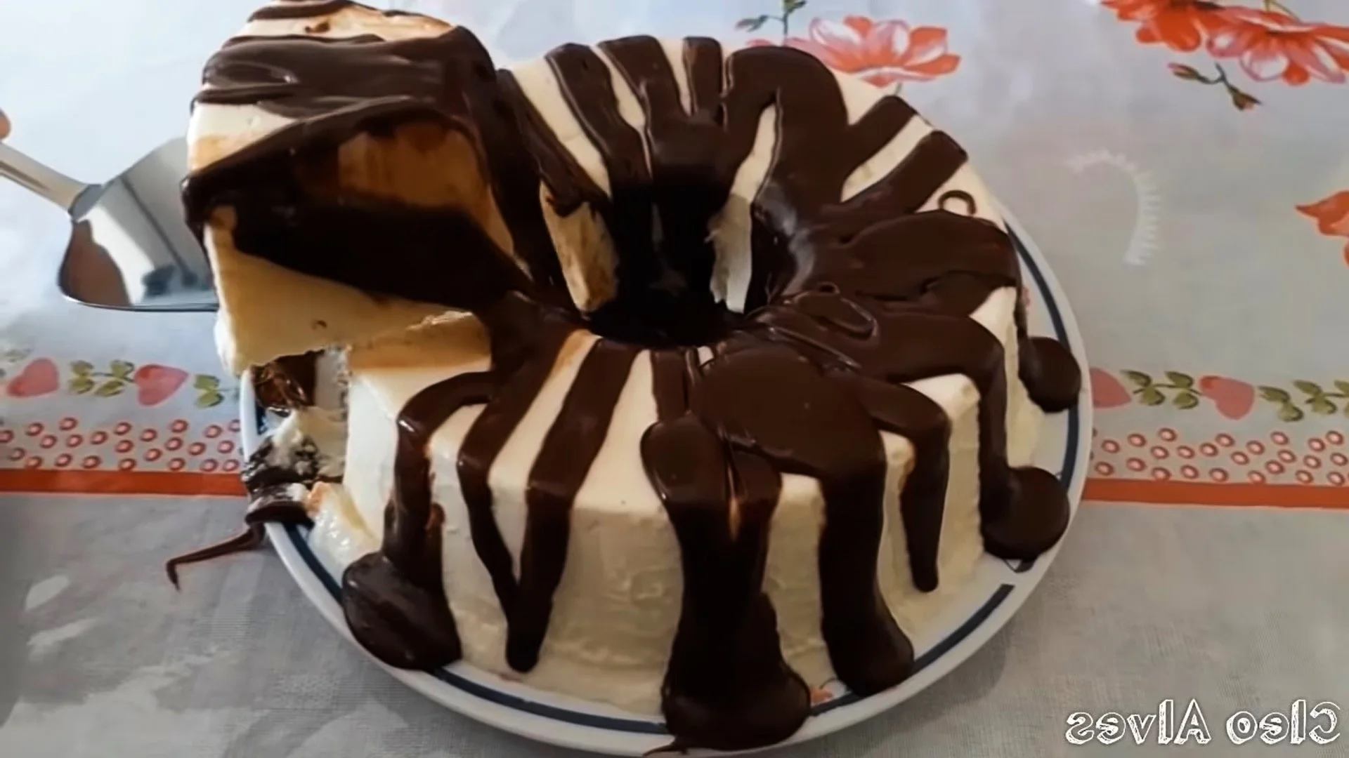 Finish by pouring ganache to taste and optional over the ice cream pudding and the dessert is ready to eat.