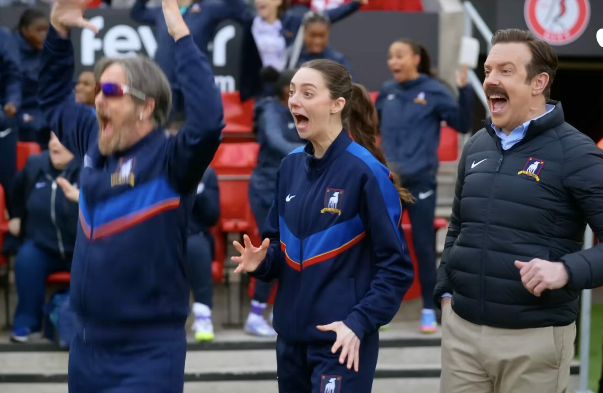 We also get brief glimpses at other original cast members like Rebecca Welton (Hannah Waddingham), Keeley Jones (Juno Temple), Roy Kent (Brett Goldstein), Coach Beard (Brendan Hunt), Leslie Higgins (Jeremy Swift), y Mae Green (Annette Badland) from the popular Crown & Anchor pub.