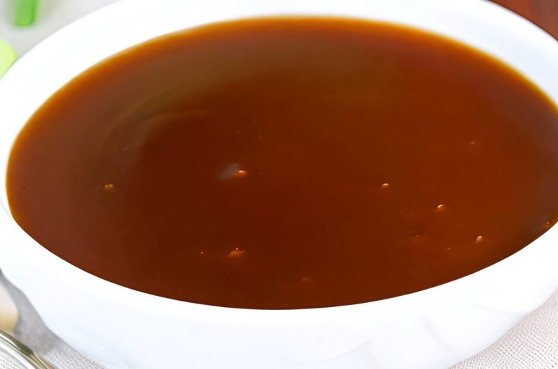 - Gradually add the meat broth to the mixture, stirring constantly to avoid lumps forming.