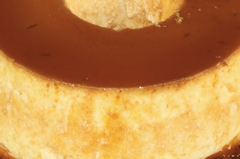 Place a large plate over the pan and carefully turn it over so that the pudding falls onto the plate with the caramelized syrup on top.