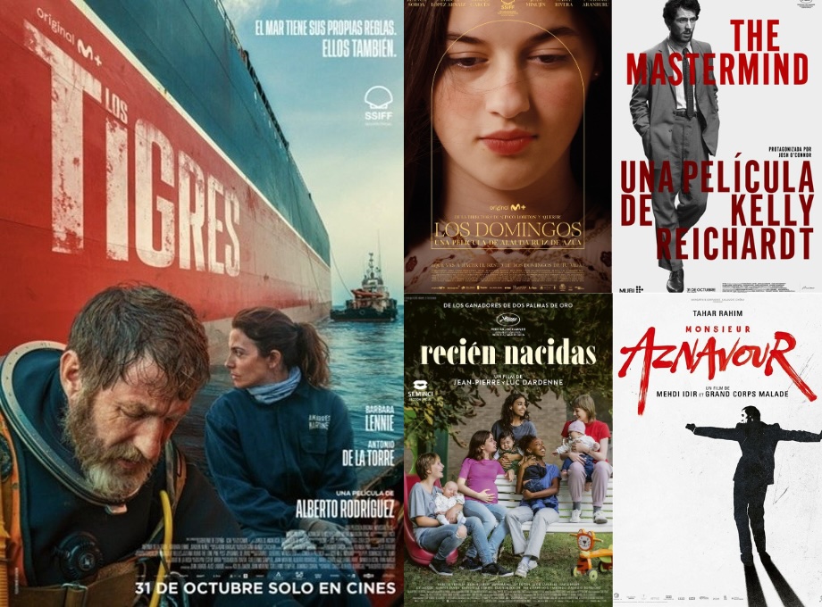 This last weekend of October, we highlight five films that can be seen in cinemas in Spain: The tigers by Alberto Rodríguez, where Bárbara Lennie and Antonio de la Torre play two brothers in a risky underwater criminal plot; Sundays by Alauda Ruiz de Azúa, a family exploration of the consequences of a young woman's decision to enter a convent; newborns by Jean-Pierre and Luc Dardenne, a moving docudrama about teenage mothers; The Mastermind by Kelly Reichardt, with Josh O'Connor at the helm of a surprising crime story in the 70s; and Mr Aznavour by Mehdi Idir and Grand Corps Malade, a vibrant biopic about the iconic singer.