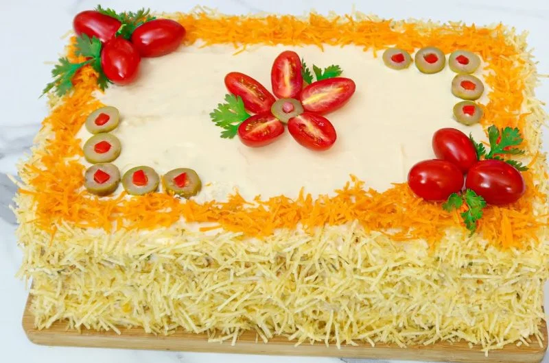 - Decorate the top with whatever you want (grated carrots, cherry tomatoes, olives…)!