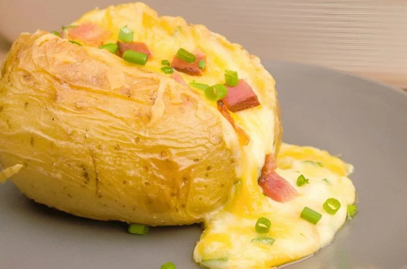 • Place the stuffed potatoes back in the oven and bake for another 10 to 15 minutes, or until the cheese is melted and the tops of the potatoes are lightly browned.