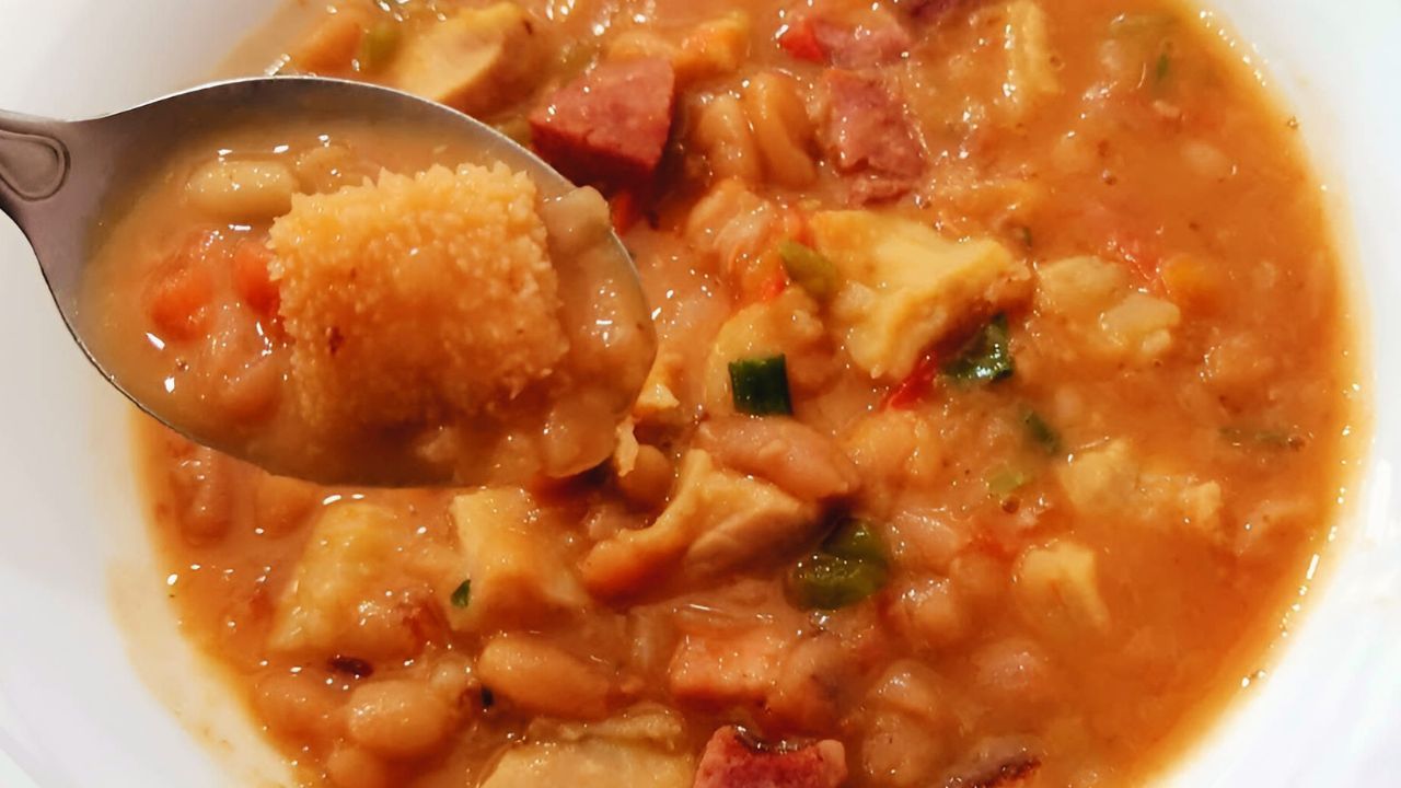 Drain the cooking water and reserve the cooked ingredients. - In another pan, heat a little oil or olive oil and sauté the onion and garlic until golden.